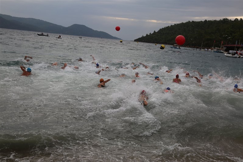 Yarışların 2. gününde ise yapılan "4 x 500 mt Relay Meet/Bayrak Yarışı" startını Muğla Vali Yardımcısı Mehmet Fikret Çavuş ile Gençlik Hizmetleri ve Spor İl Müdürümüz Serkan Öçalmaz birlikte verdiler. Kargıcak Koyu'nda düzenlenen yarışa 83 takımla 340 sporcu katıldı. Yüzücüler yarış öncesi toplu ısınma hareketleriyle yarışa hazırlandılar. Havanın bulutlu ve rüzgarlı, denizin de dalgalı olması yüzücülere zor anlar yaşattı.